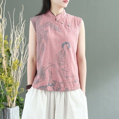 Joso杏粉色高级夏季感中式背心女式夏装原创设计网眼刺绣乡村风板扣上衣