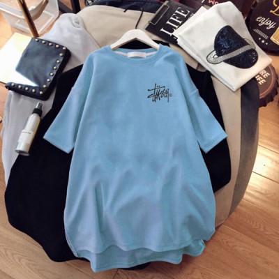 【40-80Kg】加大码女式T恤韩版BF熊刺绣短袖宽松全配休闲打底衬衫