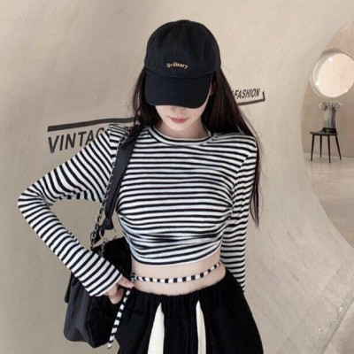 100%全棉韩国新款时尚女士全棉短袖条纹T恤女士修身大码V领半袖T恤夏季上衣