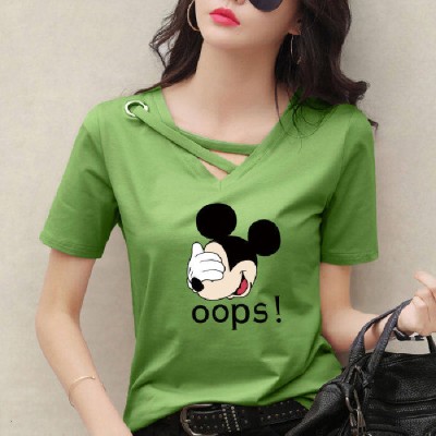 PKOGF夏季新款加大码女式T恤休闲宽松卡通印花图案加大码短袖上衣
